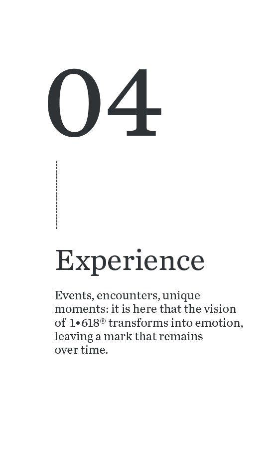 Events, encounters, unique moments: it is here that the vision of 1•618® transforms into emotion, leaving a mark that remains over time.
