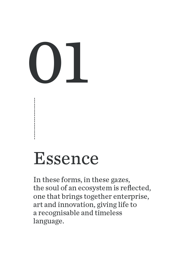 In these forms, in these gazes, the soul of an ecosystem is reflected that unites enterprise, art and innovation, giving life to a recognisable and timeless language.