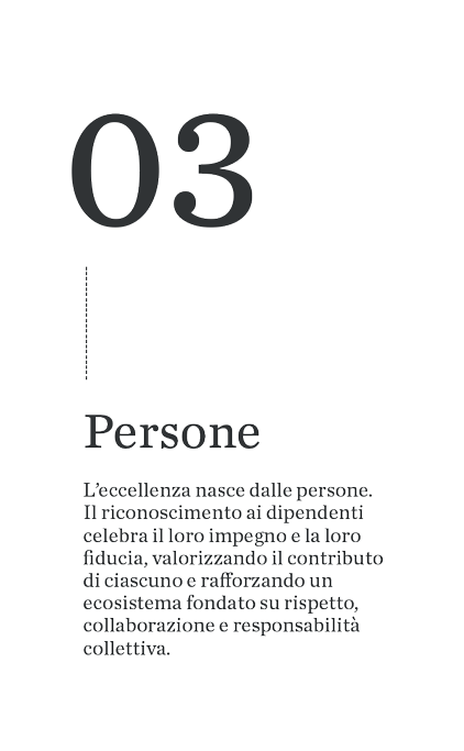 L'eccellenza nasce dalle persone. Il riconoscimento ai dipendenti celebra il loro impegno e la loro fiducia, valorizzando il contributo di ciascuno e rafforzando un ecosistema fondato su rispetto, collaborazione e responsabilità collettiva.